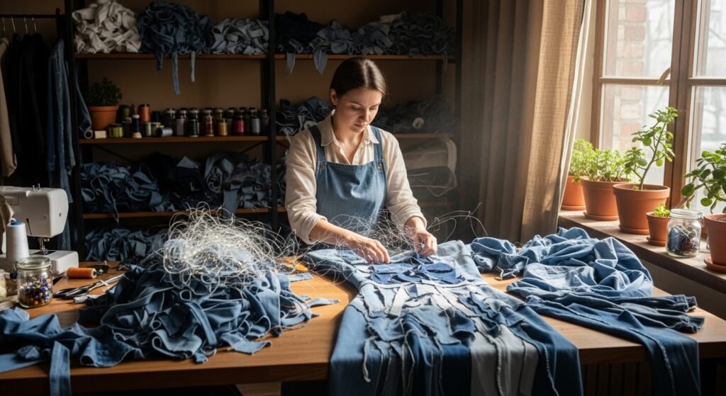 - Використання перероблених або натуральних матеріалів (органічна бавовна, коноплі, перероблений денім, біорозкладні тканини).