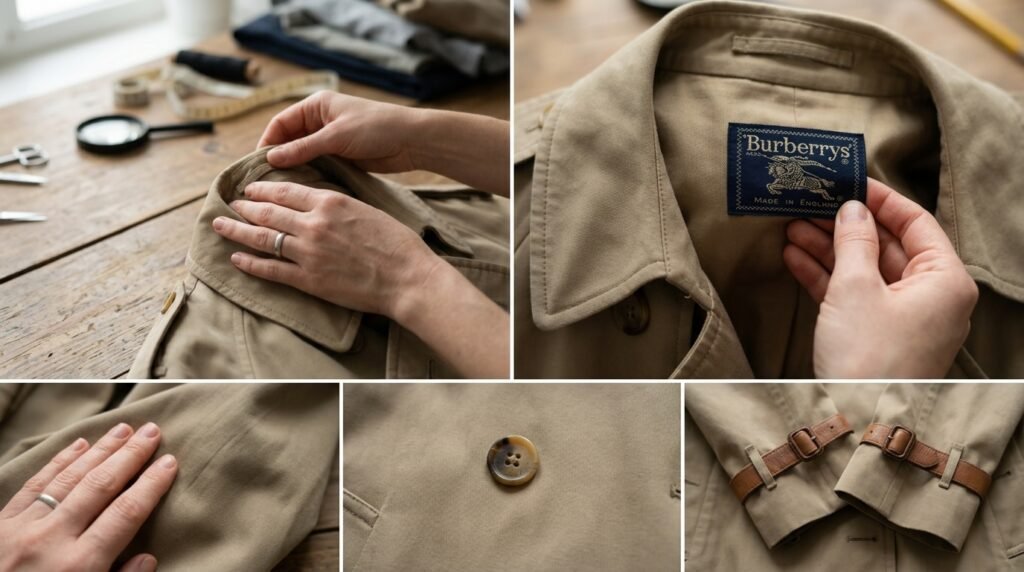 Люкс vintage — Burberry тренч 80-х + сучасні штани палаццо + лофери. Виглядає дорого без логотипів.