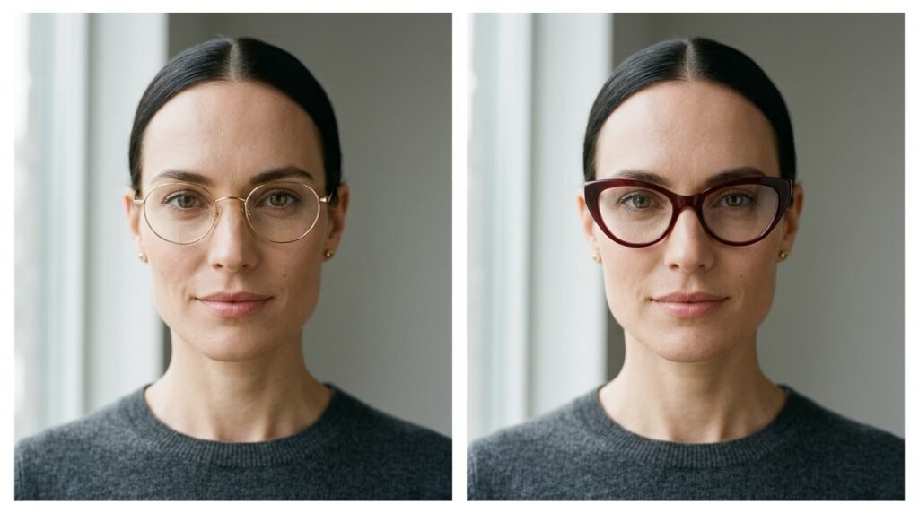 Форма оправи реально впливає на те, як сприймають твоє обличчя. Правильний вибір візуально коригує пропорції, пом’якшує гострі кути або, навпаки, додає чіткості. Неправильний — підкреслює те, що хотілося б приховати.